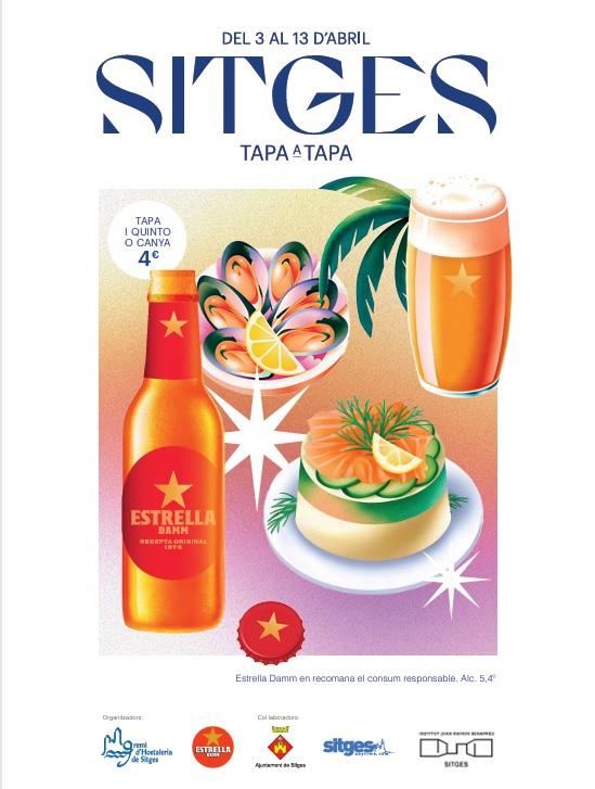 The Sitges Tapa a Tapa (spring 2025) allows you to enjoy small-format haute cuisine for 4 euros and try a tapa accompanied by a fifth or a glass of Estrella Damm beer.