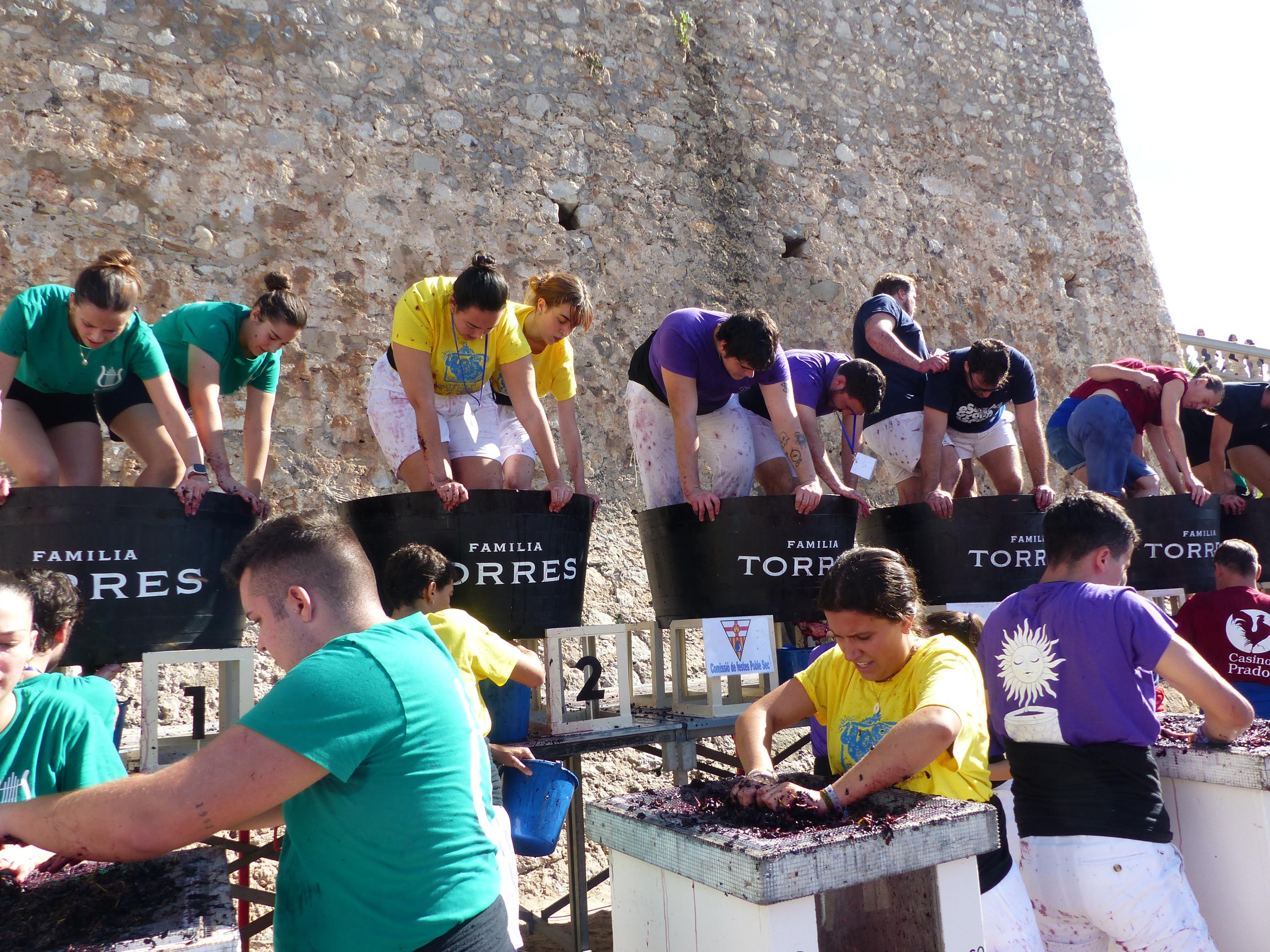 Am Sonntag stehen die traditionellsten Veranstaltungen im Mittelpunkt. Um 10:15 Uhr wird auf dem Plaça del Baluard der erste Most gepresst, gefolgt von der Opfergabe in der Kirche Sant Bartomeu und Santa Tecla. Die Weinmesse wird auf dem Plaça de la Fragata von 12:00 bis 15:30 Uhr und von 17:00 bis 21:00 Uhr fortgesetzt. Um 12:30 Uhr findet der 46. Traubenstampfwettbewerb statt, eines der Highlights des Programms. Mehr als 60 Vertreter verschiedener lokaler Organisationen werden die historische Weinlesetradition nachstellen und die Trauben mit den Füßen stampfen, um den Most zu gewinnen. Diese festliche und symbolische Aktivität ermöglicht es, sich mit den Weinbauwurzeln von Sitges zu verbinden, die lokale Kultur zu feiern und die Bedeutung von Wein und Weinbergen für das Kulturerbe der Stadt zu unterstreichen.