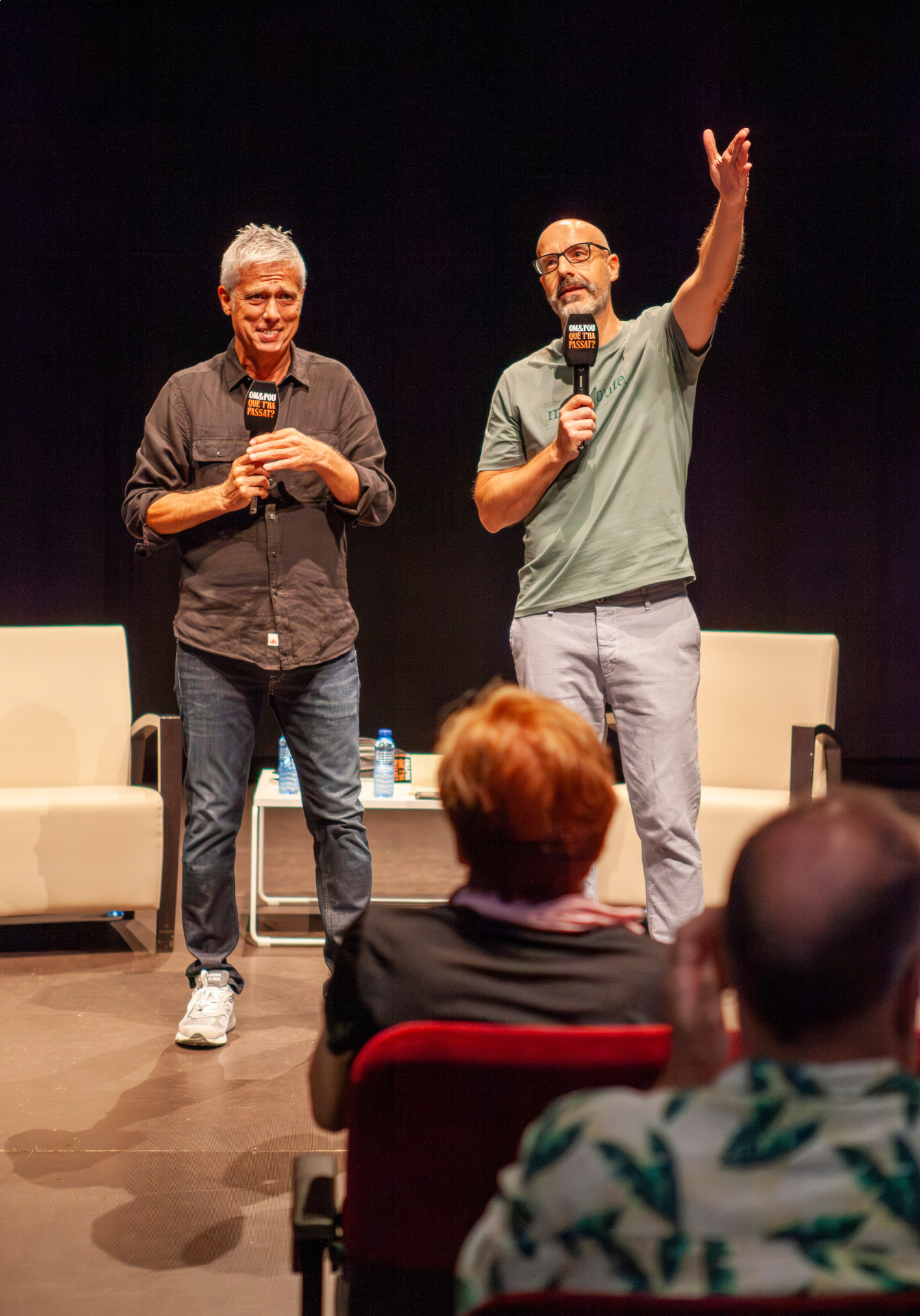 Joan Maria Pou y Albert Om dejan atrás los filtros de la radio y la televisión para encontrarse cara a cara, sin guion ni artificios, en una conversación tan honesta como divertida. Ante un público con ganas de reír, escuchar y pasarlo bien, Pou y Om —Joan Maria y Albert— comparten experiencias, anécdotas y vivencias recientes con la complicidad que los caracteriza.