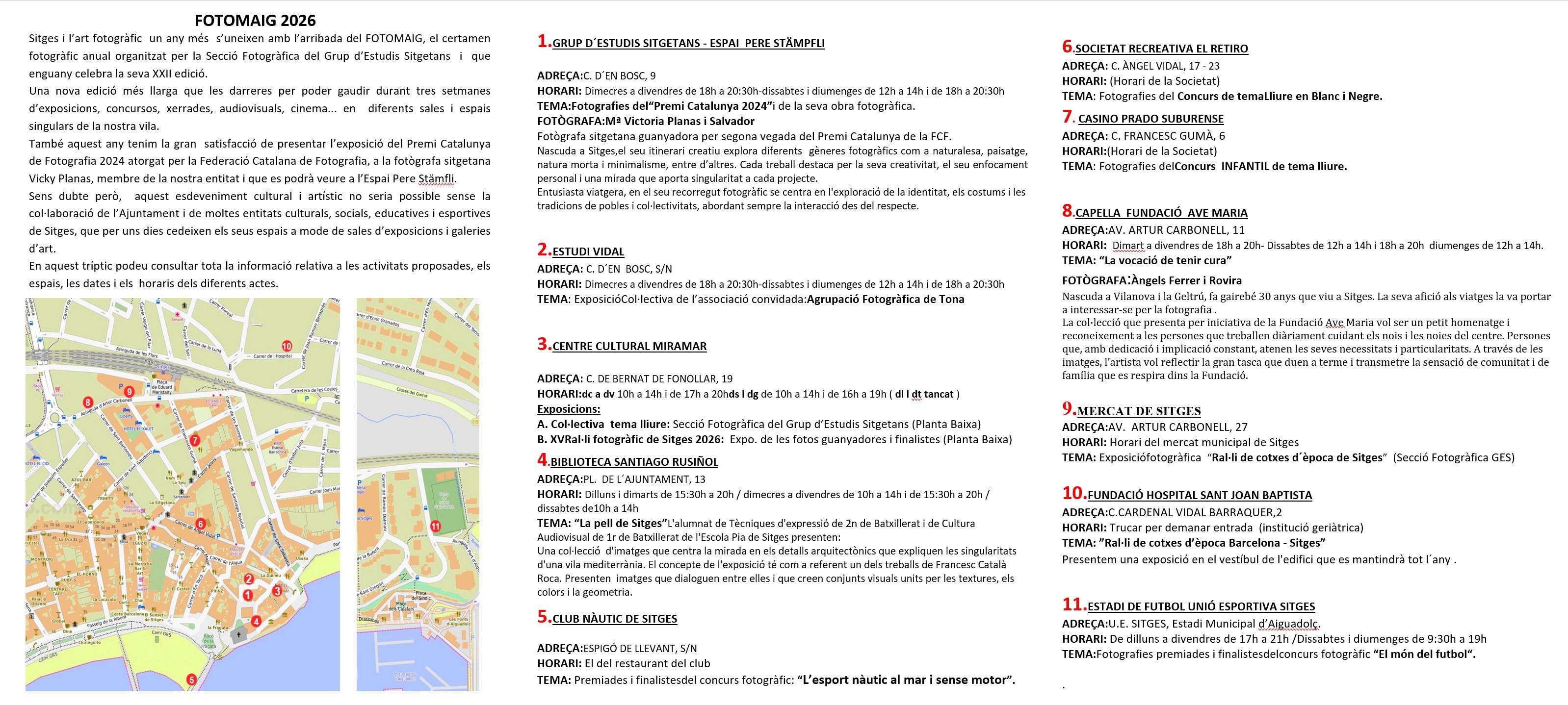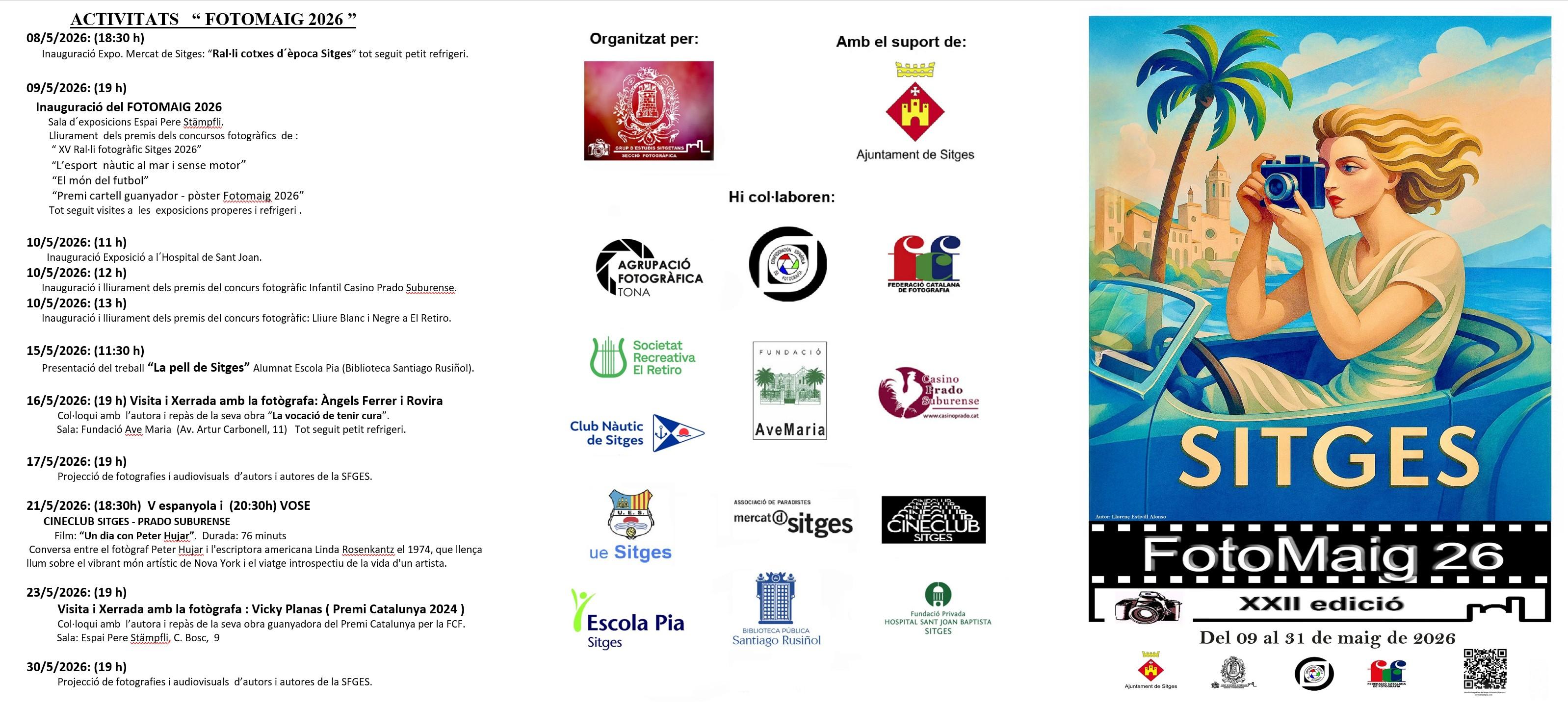 Sitges i l’art fotogràfic tornen a trobar-se al Fotomaig, el certamen anual de fotografia que celebra la XXII edició. Durant tres setmanes, la vila acull exposicions, concursos, xerrades, audiovisuals i cinema en diversos espais singulars. Destaquen l’exposició del Premi Catalunya de Fotografia 2024 a la fotògrafa sitgetana Vicky Planas, a l’Espai Pere Stämpfli, i la col·laboració de nombroses entitats locals. Una invitació a descobrir mirades diverses i úniques. Cita clau per als amants de la foto.