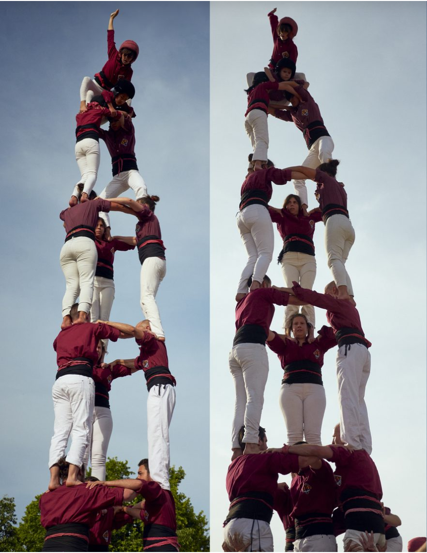 Performance for their XXXIII Diada with the Colla Jove de Castellers de Sitges, Castellers de Sants and Minyons de l'Arboç at Cap de la Vila square.